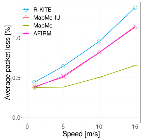 We can observe that the loss rate for all schemes increased with the producer speed, which was due to the decreased ability of the producer MM scheme to handle the more frequent mobility events.