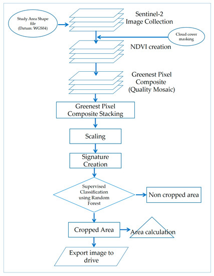 The generalized algorithm (Supplementary File S1) of coding performed on Google Earth Engine was executed in the following manner (Figure 3).