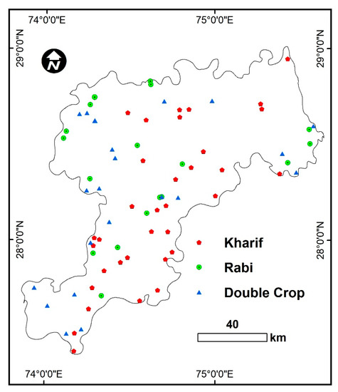 - Bisht, P.; Kumar, P.; Yadav, M.; Rawat, J.S.; Sharma, M.P.; Hooda, R.S. Spatial dynamics for relative contribution of cropping pattern analysis on environment by integrating remote sensing and GIS. Int. J. Plant Prod. 2014, 8, 1–17. [Google Scholar]