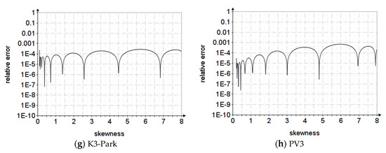 For the K3-Park and PV3 distributions, the type of polynomial function with logarithmic argument with relative errors below 10−3 was adopted for both parameter estimation methods.