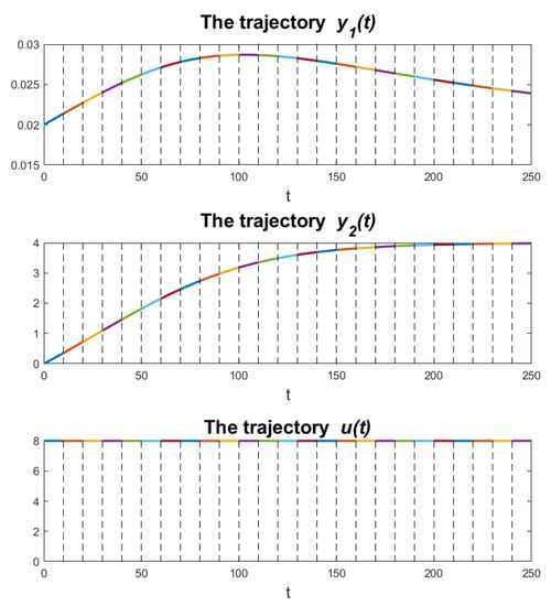 The values of the state variables at the end of a subinterval are treated as starting values for the next subinterval. Therefore, Equations (9) and (11) can take the form of a finite-dimensional optimization task with an objective function