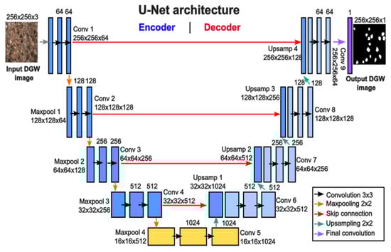 It is well known that training a CNN from scratch is energy-intensive and requires huge labeled datasets [20,21]. That is why, to overcome this problem, it is established in the computer vision community to use transfer learning techniques [22,23,24]. Transfer learning consists of using a pre-trained CNN model [25] (often called “backbones”), trained over a large standardized dataset model by shifting its weight over a new training dataset of interest (i.e., DGW images). For example, in computer vision (especially segmentation tasks), ImageNet [26] is a widely used dataset for a pre-trained model of over 14 million labeled images. Based on this observation, several new CNN architectures have been developed over the years, such as AlexNet [27], VGG [28], ResNet [29], GoogLeNet [30], U-Net [31], Inception [32], DenseNet [33] and EfficientNet [34].