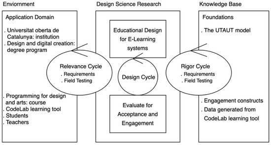 Taking into account the unique experience of an online course that mainly involves interacting with an online programming tool, students’ acceptance evaluations of the tool seemed vital. This paper discusses the acceptance evaluation of a pilot study of the CodeLab tool and is part of the on-going research project on the learning-by-doing practice-based e-learning systems. The research methodology that is applied in this context is the “design and creation” methodology [57]. This research methodology helps in providing the opportunity to recognize, articulate, reflect, and design artifacts to address the problems at issue (Figure 1). The pilot study aimed to improve the educational and interaction design of the tool and to elicit qualitative and quantitative data from the students and teachers. The data generated through the usage of the CodeLab tool were also used for the evaluation of student behavior and engagement. Several e-learning tools and systems were evaluated for acceptance to help determine their continued usage by the students. The acceptance evaluations in this paper were not only specific to the tools but would also help to determine the factors that would need to be considered when developing and evaluating similar e-learning systems that encourage practice for learning.