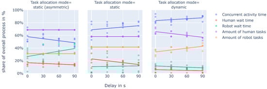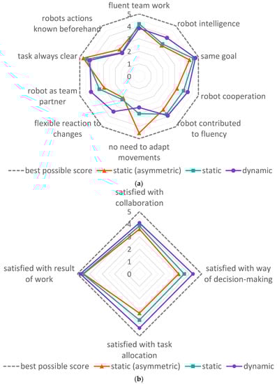 For considering these effects, only two references [42,43] conducted user studies for evaluation of their proposed approaches (highlighted in light grey in Table A1). From those, the study in [42] evaluates the implications of different trust levels on human satisfaction and assembly performance. Reference [43] proposes a dynamic task allocation system that aims at minimizing human fatigue and compares their approach with a static task plan in a user study.