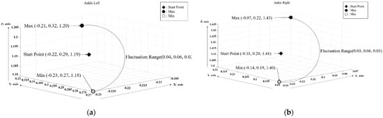 | Ankle Right | X: −0.07 Y: 0.22 Z: 1.43 | X: −0.14 Y: 0.19 Z: 1.40 | X: 0.03 Y: 0.06 Z: 0.03 |