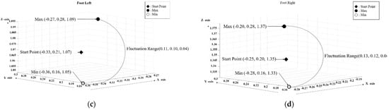 | Foot Right | X: 0.20 Y: 0.28 Z: 1.37 | X: −0.28 Y: 0.16 Z: 1.33 | X: 0.13 Y: 0.12 Z: 0.04 |