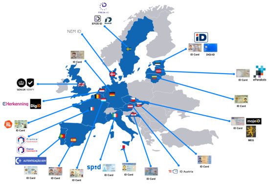- European Commission. Overview of Pre-Notified and Notified eID Schemes under eIDAS. 2022. Available online: https://ec.europa.eu/cefdigital/wiki/display/EIDCOMMUNITY/Overview+of+pre-notified+and+notified+eID+schemes+under+eIDAS (accessed on 1 September 2022).