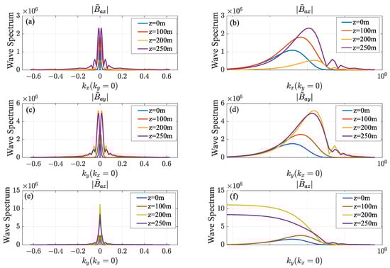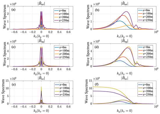 Spectral distribution of weak magnetic field in wavenumber domain (z = 250 m).