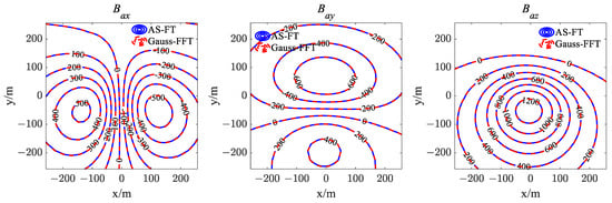 We compared AS-FT, standard-FFT, and Gauss-FFT with the space-wavenumber domain algorithm to realize magnetic field numerical simulation.