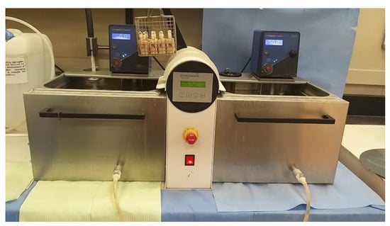 The cemented provisional crowns were thermocycled for 5000 cycles between baths held at 5 °C and 55 °C with a dwell time of 30 s and a transfer time of 5 s using a thermocycling machine (Model 1100, SD Mechatronik, Bayern, Germany) to represent 6 months in the oral environment [22] (Figure 5).