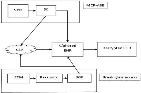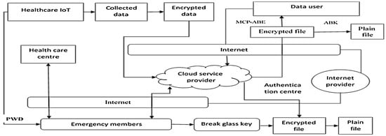 In this paper, modified cipher text policy attribute-based encryption (MCP-ABE) with a break-glass (BG) mechanism is proposed for data access in the smart healthcare environment. The architecture diagram of the smart healthcare environment is shown in Figure 1.