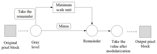 Data columns entering the statistics queue are first modulated. The modularization process is performed to take the remainder between the pixel block value and the preset minimum scale unit and subtract the remainder from the pixel block value, thus obtaining the output value. The details are shown in Figure 4.