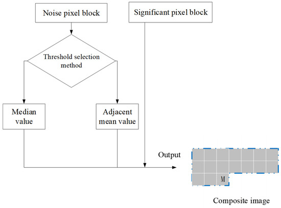 Finally, to maximize the preservation of image details and reduce smear, the processing value of effective pixel blocks will be directly output without processing. The specific noise processing process is shown in Figure 12.