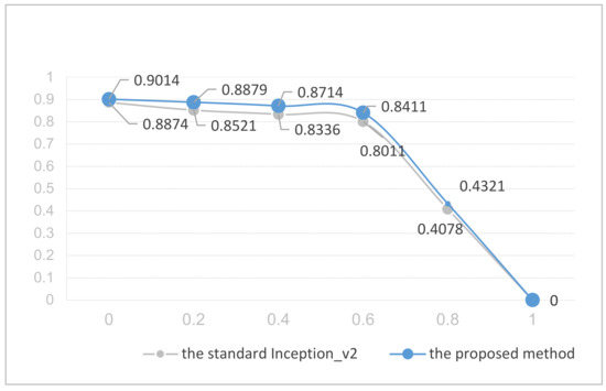 The trends in classification accuracy of standard Inception_v2 and the proposed method.
