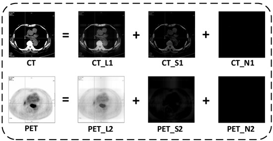 Common medical images, such as Computed Tomography (CT) images, have high spatial resolution and can provide accurate anatomical information of lesions for the clinical diagnosis of patients [1]. However, due to the low resolution of soft tissue, CT images have certain limitations in qualitative diagnosis [2]. Positron Emission Tomography (PET) images are highly sensitive for the early diagnosis of tumors, but due to the low spatial resolution of the images, accurate anatomical structure information of the lesion cannot be provided by these images [3]. In the face of complex diseases, medical images with a single mode cannot provide sufficient auxiliary information for clinicians to refer to, while the fused images can simultaneously present effective information of images with different modes, which can improve the identification ability of the lesion area. It has an important clinical application value in early diagnosis, clinical staging, localization of lesion areas, formulation of diagnosis and treatment plans, and evaluations of the curative effect of tumors.