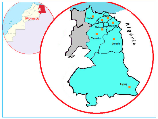 The map of Eeastern Morocco with the regions of investigation.