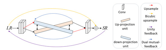 - Haris, M.; Shakhnarovich, G.; Ukita, N. Deep Back-Projection Networks for Super-Resolution. In Proceedings of the 2018 IEEE Conference on Computer Vision and Pattern Recognition (CVPR), Salt Lake City, NT, USA, 18–22 June 2018. [Google Scholar]