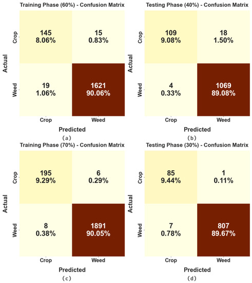 The confusion matrices of the MBMODL-WD model on the weed detection process are demonstrated in Figure 3. The outcomes displaying the MBMODL-WD model properly recognized the crop and weed images under all aspects.