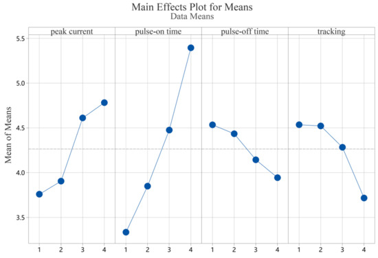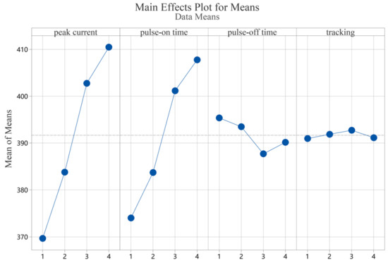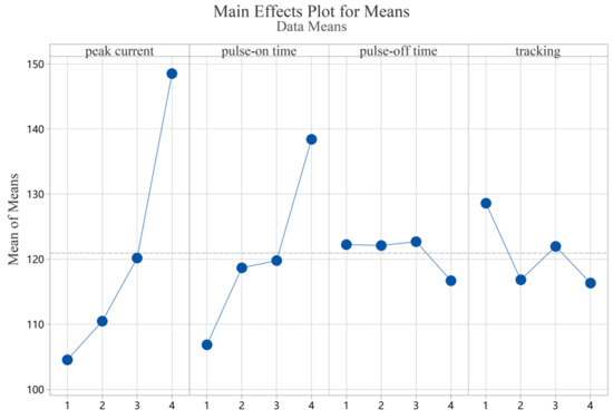 - The results of the ANOVA analysis of surface roughness, surface residual stress, and surface microhardness showed that pulse-on time and peak current were the main process parameters affecting the surface roughness, surface residual stress, and surface microhardness.
