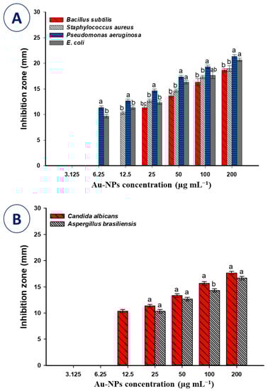 3.3. Antimicrobial Activity of AuNPs