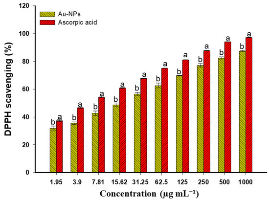APA StyleFouda, A., Eid, A. M., Guibal, E., Hamza, M. F., Hassan, S. E.-D., Alkhalifah, D. H. M., & El-Hossary, D. (2022). Green Synthesis of Gold Nanoparticles by Aqueous Extract of Zingiber officinale: Characterization and Insight into Antimicrobial, Antioxidant, and In Vitro Cytotoxic Activities. Applied Sciences, 12(24), 12879. https://doi.org/10.3390/app122412879