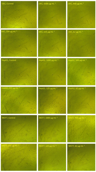 2.6. In Vitro Cytotoxic Assay