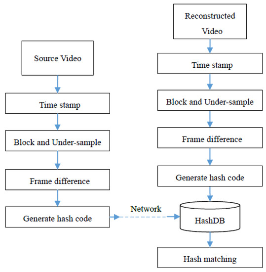 is the value of the kth bit of the hash code. The Hamming distance is used to calculate the distance of two code strings, that is, the corresponding bits of the reconstructed video frame feature hash value and the original video frame feature hash value are XOR processed and the number of 1 is counted, as shown in Equation (9). The distance determines the correspondence between two frames. The smaller the distance, the stronger the correlation between the two frames, and the less the correlation. In this way, the original video frame matching with the reconstructed video frame can be found, and the end-to-end latency of video transmission can be obtained by using the time stamps carried by the two video frames.