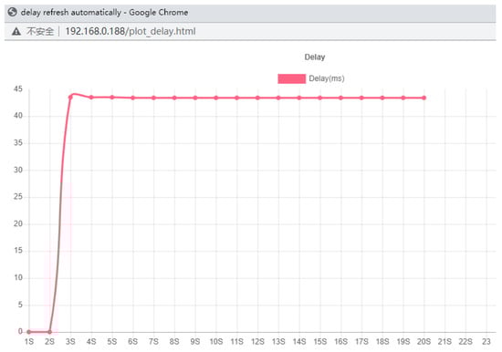 Table 1 shows the timestamp of the first 10 s of the reconstructed video and the matched original video frame and calculates the delay value. Due to the limitation of the distance between the sender and the receiver, the latency measurement results are designed to be real-time output in the form of web pages, where the horizontal coordinate is time, the unit of second represents the monitoring once a second in actual operation, and the vertical coordinate is the latency value, the unit of which is millisecond, as shown in