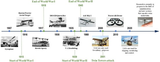During the Second World War years [23] and later during the Vietnam War, new drones were produced for military purposes [24].