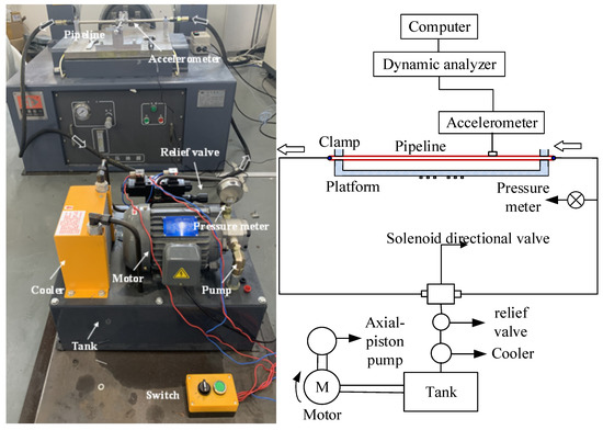 - Gao, P.; Qu, H.; Zhang, Y.; Yu, T.; Zhai, J. Experimental and Numerical Vibration Analysis of Hydraulic Pipeline System under Multiexcitations. Shock Vib. 2020, 2020, 3598374. [Google Scholar] [CrossRef]