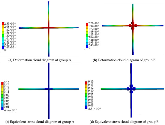 Figure 13 shows the deformation and equivalent stress cloud diagram of the pipeline. The difference value of the maximum deformation and equivalent stress due to the joint effect are 6.02% and 8.22%, respectively. The joint reduces the deformation of the pipeline and the value of the equivalent stress.