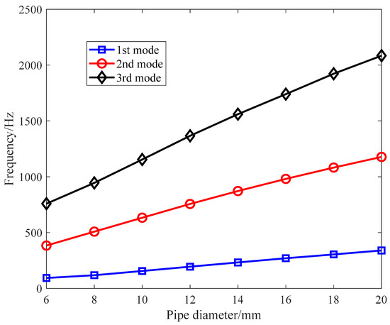First three-order natural frequencies of the pipeline at different pipe diameters.