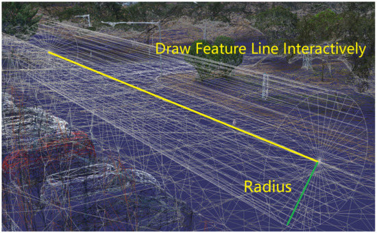 As shown in Figure 2, the yellow line is the interactively drawn feature line and the green line is the set radius.