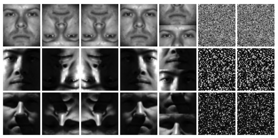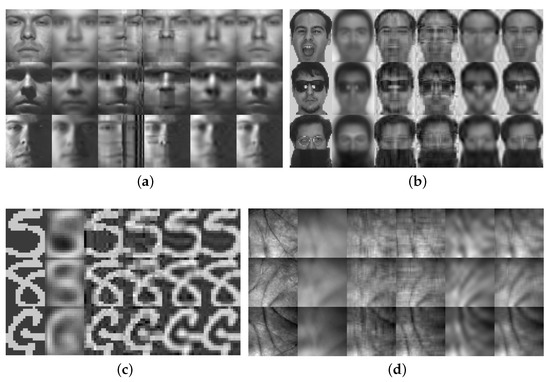 (2) When , and the pixels in images are not reordered, the projection and reconstruction results of DB2DPCA are just integrating the results of 2DPCA and A2DPCA, as shown in Equations (16) and (17), respectively.
