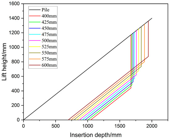 According to Equation (1), the bucket tip position is only a function of Z, provided that the material density, porosity, rest angle of the pile, bucket width, and rated shoveling weight are known. Then different Z values are selected and brought into Equation (1) to obtain the corresponding bucket tip trajectory.