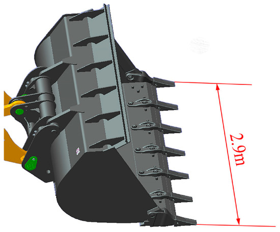 The test vehicle has a rated shovel weight of G = 5000 kg, a rated bucket volume of V2 = 3 m3, and a bucket width of B = 2.9 m. It is also necessary to analyze and investigate the material characteristics to determine the bucket tip trajectory of the flat bucket and to calculate the relevant essential test data later.
