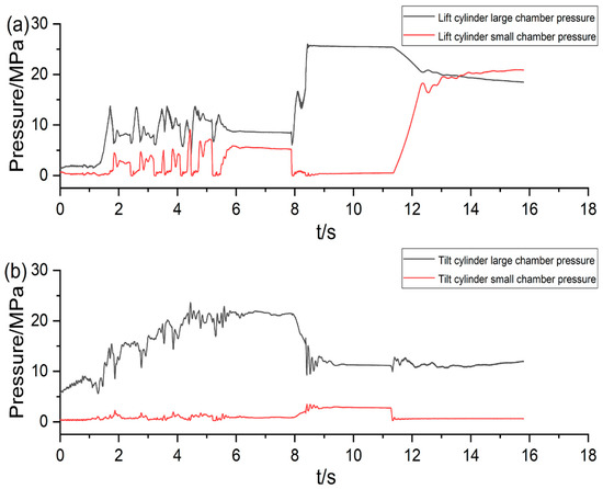(a) Pressure of the lift cylinder; (b) pressure of the tilt cylinder.