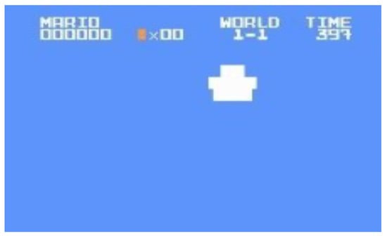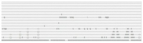 After the customization of the environment, the environment picked up a synthetic level from the GAN module and returned 16 × 13 integer arrays as state representations of the game states to the RL agent throughout the game play. Visualizing it would render something similar to the following pixelated level (Figure 6).