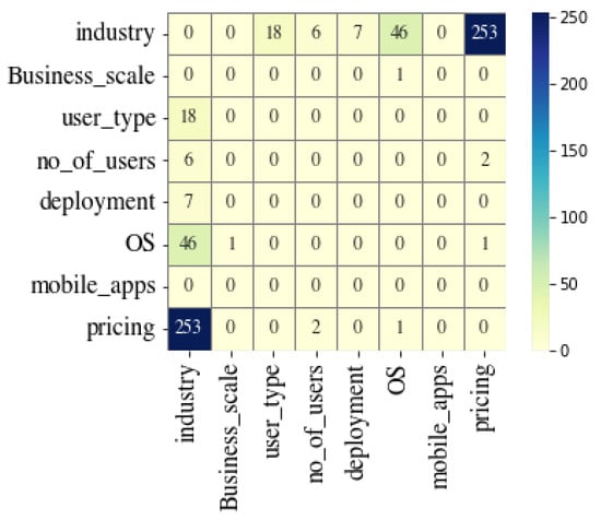 Figure 1 shows the number of associations detected by the method. The proposed method discovered that the highest number of associations in the BI Software recommendation data set occurred for the variables industry and pricing.