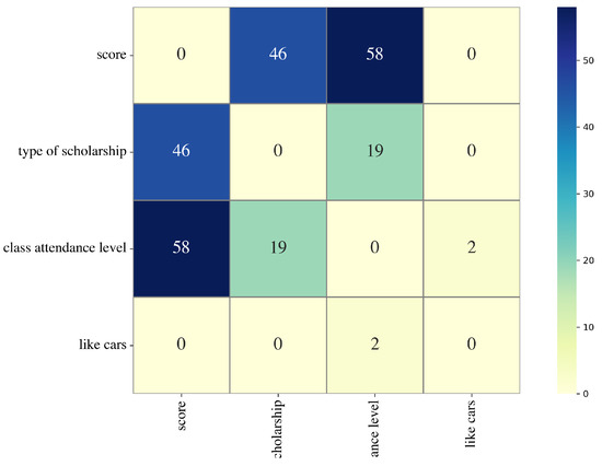 The values shown in the cells of Figure 2 indicate the number of associations detected between pairs of variables.
