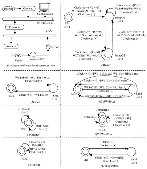- Jiang, K.; Guan, C.; Wang, J. Model checking coordination of CPS using timed automata. In Proceedings of the IEEE Computer Software and Applications Conference, Tokyo, Japan, 23–27 July 2018. [Google Scholar]