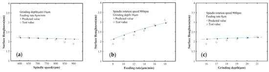 Influence of different machining parameter on the surface roughness Ra: (a) spindle speed; (b) feeding rate; (c) grinding depth.