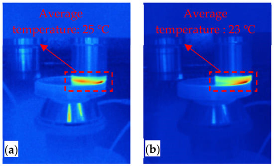 Thermogram of different tools (after machining 5 min): (a) gel abrasive tool; (b) hot-pressing abrasive tool.