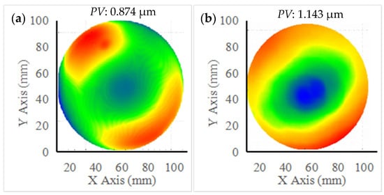 Flatness of sapphire after machining using different tools: (a) gel abrasive tool; (b) hot-pressing abrasive tool.