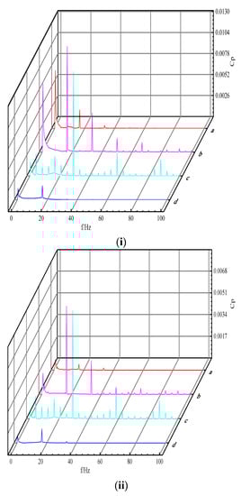 Frequency domain diagram of the pressure pulsation under turbine condition. (i) 0.6Q. (ii) 1.0Q.