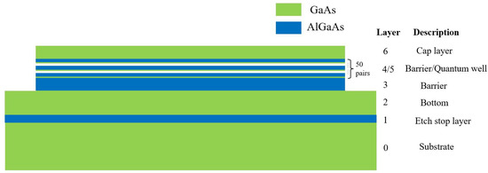 - Lee, J.; Devre, M.; Reelfs, B.; Johnson, D.; Sasserath, J.; Clayton, F.; Hays, D.; Pearton, S. Advanced selective dry etching of GaAs/AlGaAs in high density inductively coupled plasmas. J. Vac. Sci. Technol. A Vac. Surf. Film. 2000, 18, 1220–1224. [Google Scholar] [CrossRef]