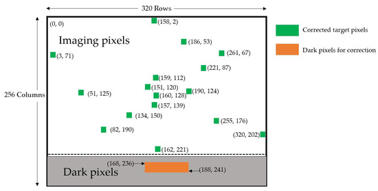 Although some naturally formed blind pixels cannot receive external radiation, dead pixels cannot effectively replace dark pixels because (1) there are uncertainties in the formation of dead pixels; (2) there is no guarantee that their function will be effective in the long term; (3) the dark current characteristics of dead pixels and normal pixels are not necessarily the same; and (4) the response characteristics of different dead pixels vary [24,25].