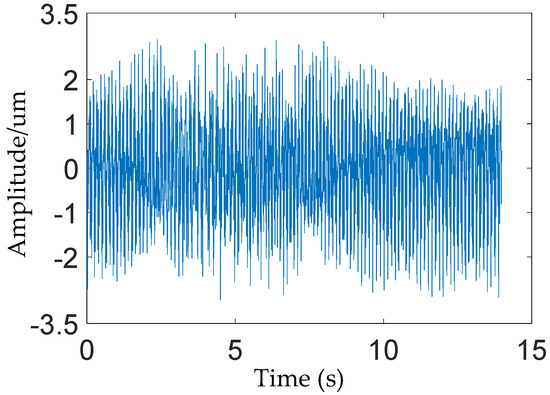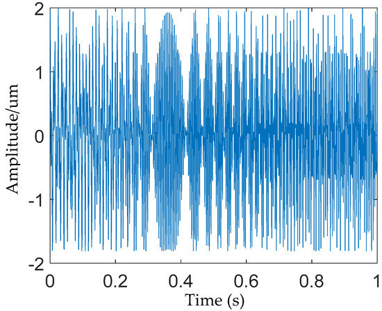 The signal is comprised of a constant-frequency signal and an FM signal, and the instantaneous frequency components of both of them are crossed. The sampling frequency is 1000 Hz, and the sampling time is 1 s. The time-domain waveform of the simulation signal is shown in Figure 10.