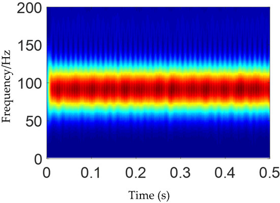 From Figure 16, although the GLCT extracts the faulty feature frequency, the resolution of the features in the time and frequency domains is obviously unsatisfactory and needs further improvement. From Figure 17 and Figure 18 both the SET and RSECT can clearly extract the fault feature frequency of 90Hz with better resolution in both time and frequency domains, which has obvious advantages. Comparing Figure 17 and Figure 18, the RSECT retains the advantages of the SET, thus further improving the time–frequency resolution and the smoothness of the time–frequency features. The effectiveness of the proposed RSECT is further verified.