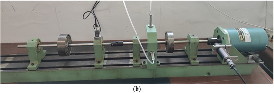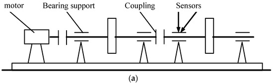 To further verify the effectiveness, the proposed method is applied to the analysis and processing of the rubbing test data of the double-disk rotor. The rotor experimental stage is illustrated in Figure 19a. The rotor is driven by an electric motor and the bearings are sliding bearings. The vertical and horizontal vibrations are measured by a non-contact eddy current sensor. The rubbing rotor test bench is shown in Figure 19b.